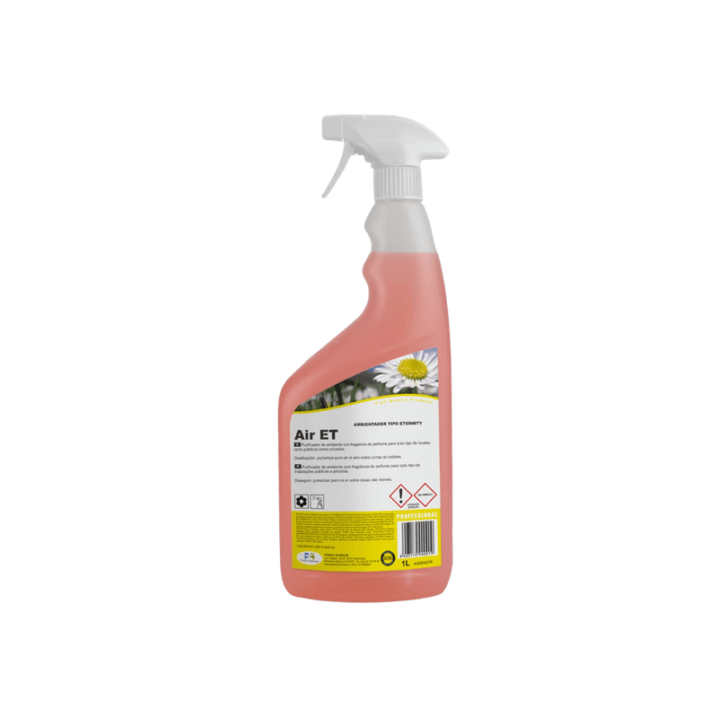 Air ET é um ambientador com aroma tipo Eternity, de elevada concentração, com fragrância a perfume, que desenvolvido para todo o tipo de locais (públicos e privados), que devido ao tráfego intenso de pessoas ou materiais, requerem de um ambiente agradável.