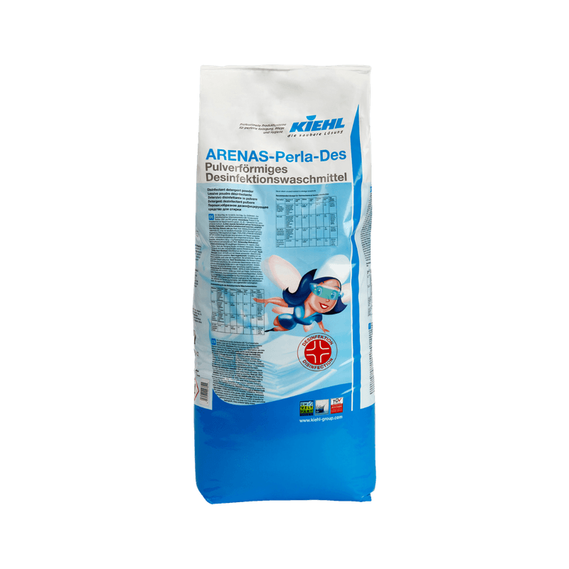Arenas-Perla-Des é um detergente desinfetante em pó para roupa, livre de fosfatos.