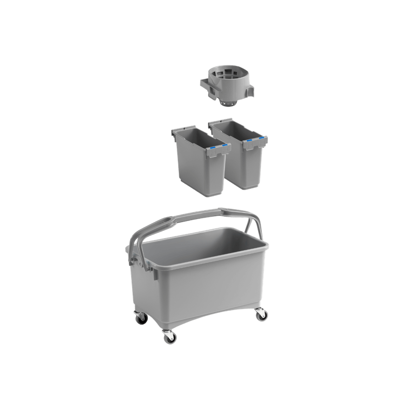 Balde Eroy indicado para limpeza de sanitários, com 28L de capacidade, pega e rodas de 50mm.