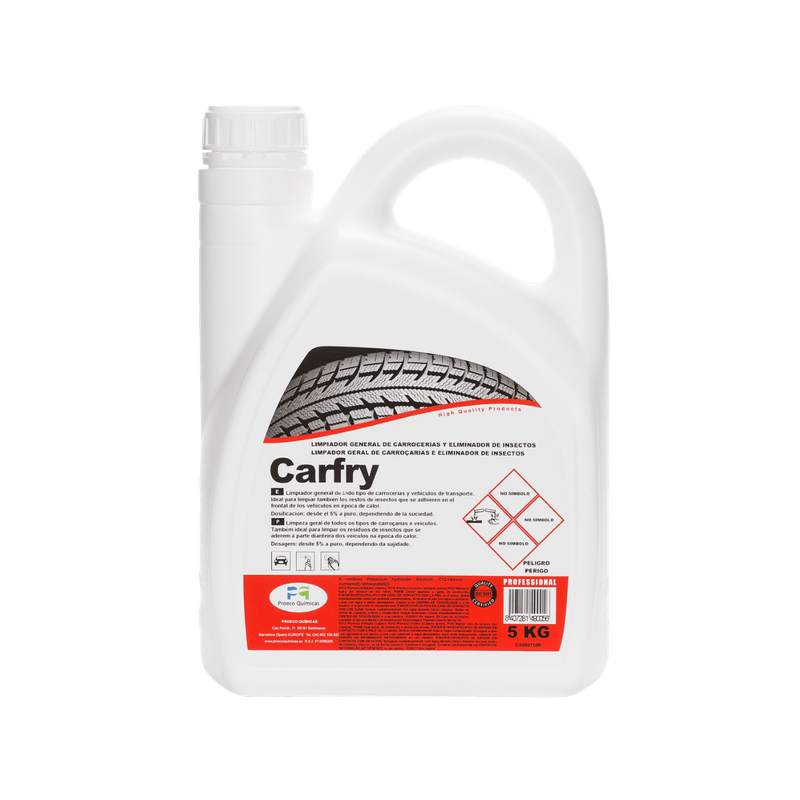 Detergente geral para todo o tipo de carroçarias e veículos de transporte. Carfry é ideal para limpar, a fundo, todos os restos de insectos, que se aderem na frente dos veículos nas épocas de calor.