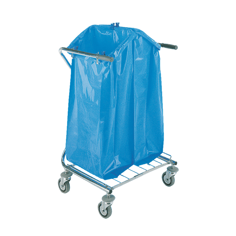 Carro cromado com dois suportes de 120 LT. Sacos não incluídos.