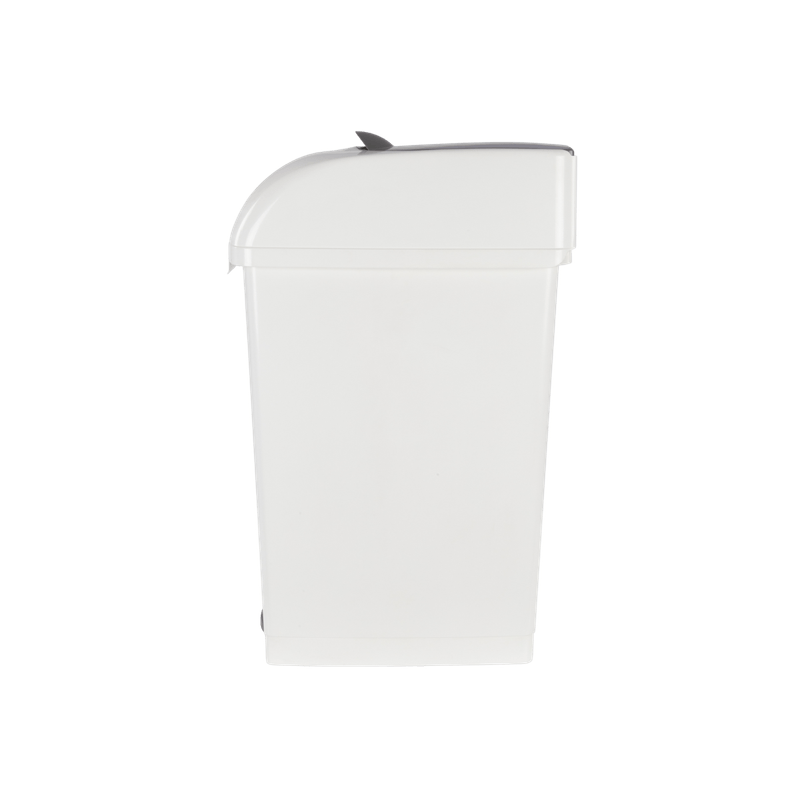 Contentor sanitário em polipropileno com pedal e suporte para saco plástico. Indicado para fraldas e pensos higiénicos.