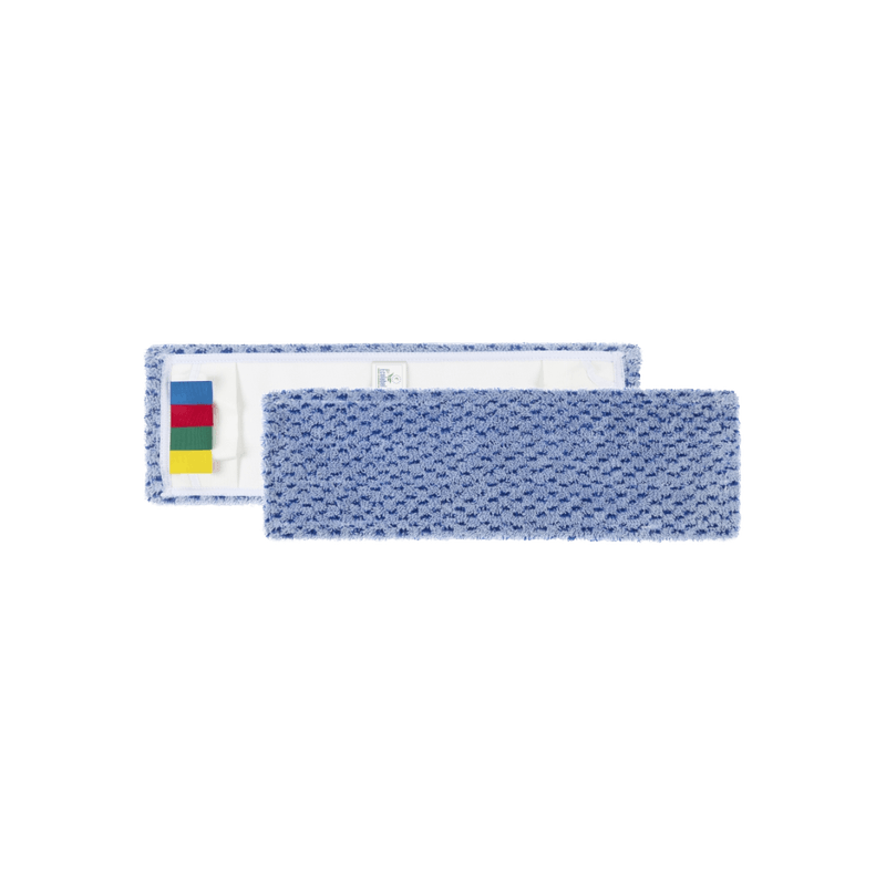 Franja de microfibra com suporte em poliéster. Para superfícies antiderrapantes e para remoção de sujidade entranhada. Adequada para utilização com caixilho Wet Disinfection. Temperatura de lavagem na máquina: 90ºC.