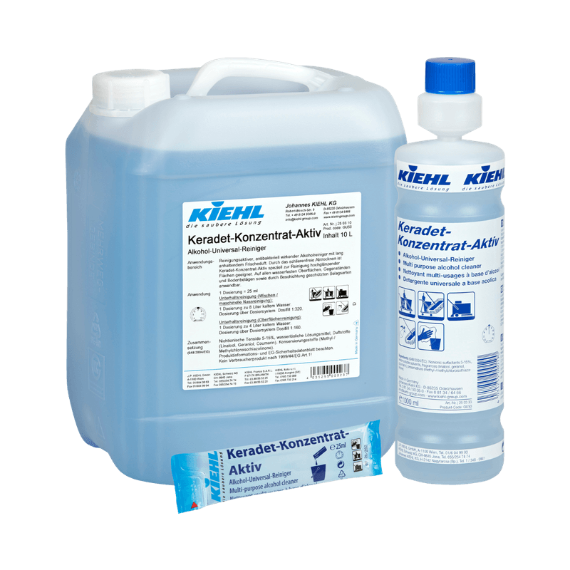 Keradet Concentrado Aktiv é um produto de limpeza multiusos à base de álcool.