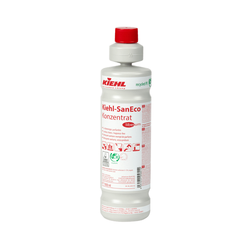 Kiehl-SanEco Concentrado é um detergente para limpeza de sanitários com perfume fresco, formulado para uma limpeza de rotina rápida e eficaz, à base de ácido láctico.