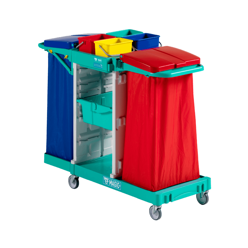 4 baldes de 4 LT (azul, vermelho, verde, amarelo) incluídos. Sacos (120 LT) e tampas não incluídos.