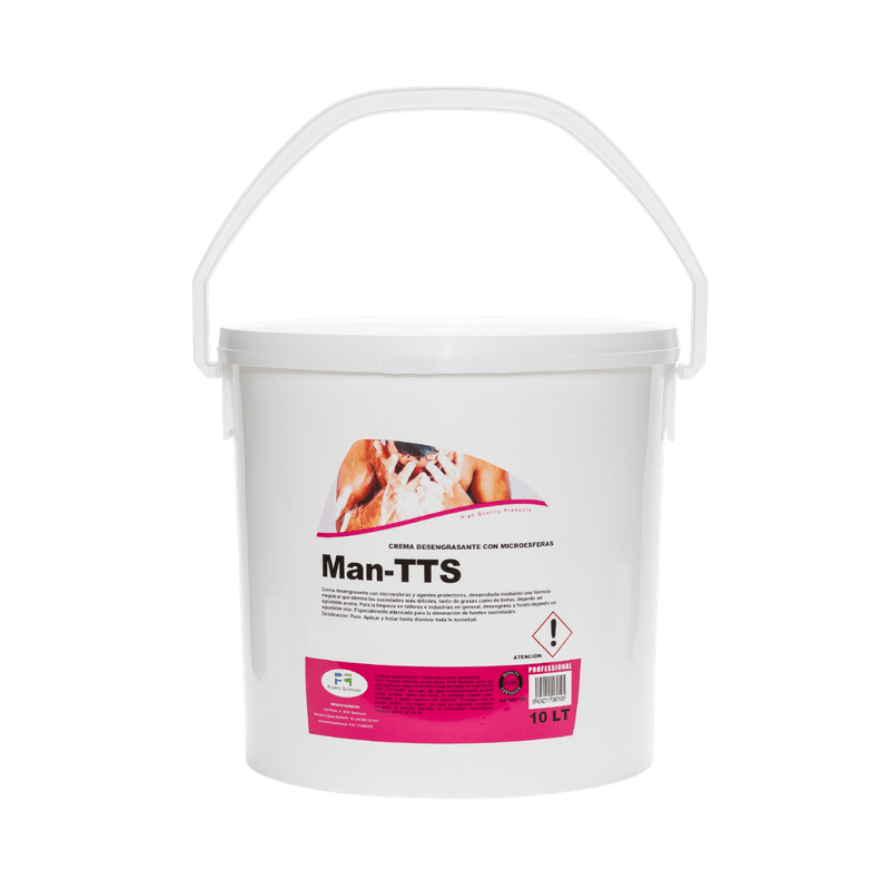 O produto Man-TTS é uma pasta com microesferas desengordurante, que foi desenvolvido mediante uma fórmula magistral, para eliminar as sujidades mais difíceis, que outros produtos convencionais não conseguem eliminar. As microesferas penetram nas fissuras da pele, eliminado qualquer tipo de sujidade, por mais persistente que seja.