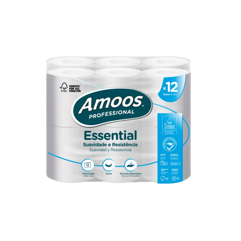 Papel higiénico doméstico de duas folhas.