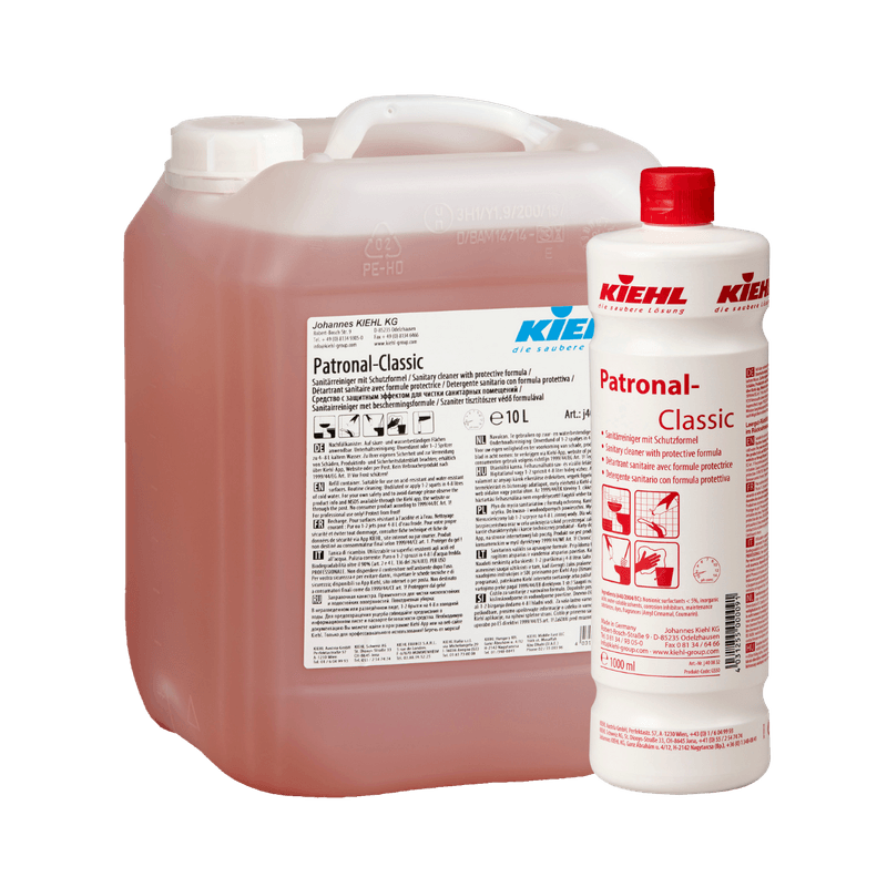 Patronal-Classic pode ser utilizado em superfícies e objetos resistentes a ácidos e à água em áreas sanitárias. Superfícies sensíveis a ácidos, como revestimentos de crómio danificados, latão, alumínio anodizado, poliamida e pedras naturais e artificiais sensíveis a ácidos, podem ser danificadas por produtos à base de ácido.