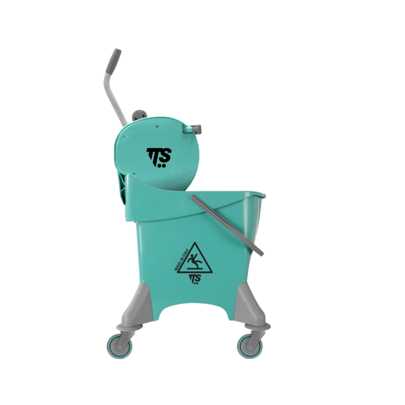 Pile é um balde único/single com espremedor de rolo (Dry) e rodas de Ø 80 mm. Este balde único é ideal para a limpeza de áreas médias e grandes onde é necessário enxaguar as mopas ou franjas.