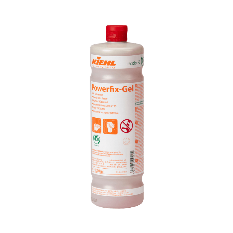 Poerfix-Gel é adequado para a remoção de depósitos difíceis de dissolver em sanitas e urinóis. Os produtos que contêm ácido podem danificar