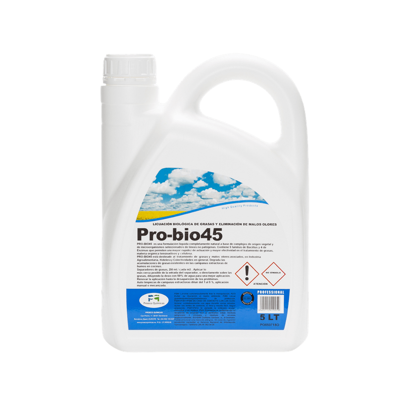 Pro-Bio45 é um produto para tratamento biológico de gorduras e eliminação de maus odores.
