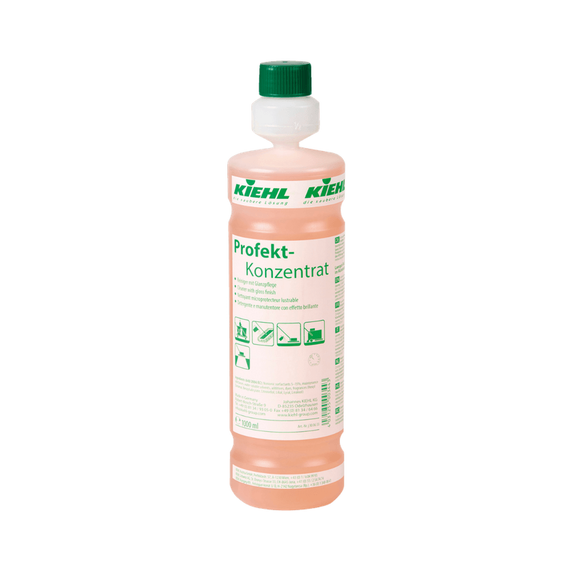 Profekt Concentrado é um detergente com acabamento brilhante, que forma uma película de manutenção auto-brilhante e resistente, oferecendo uma repelência excepcional à sujidade.