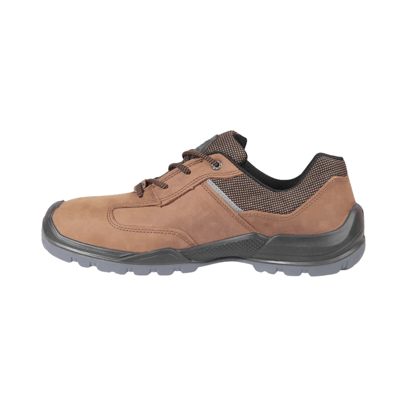 É um sapato anti-estático, absorvente de energia, anti-derrapante, com capacidade de repelir água, resistente ao impacto, à perfuração e ao óleo.