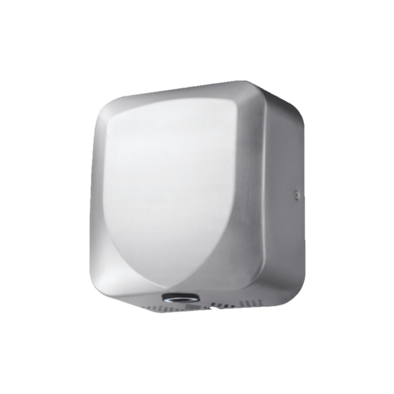 Secador de mãos ecológico, de alta velocidade, resistente e duradouro. Com um design elegante e acabamento em inox escovado.