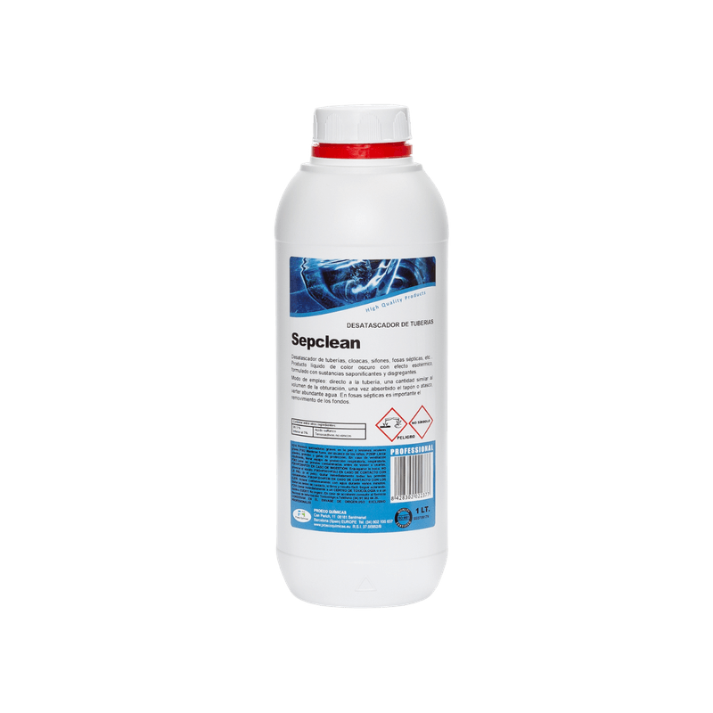 Sepclean é um desentupidor ácido de canalizações. Produto desenvolvido para a eliminação de entupimentos em ralos, canos e fossas sépticas. Sepclean dissolve qualquer congestionamento provocado por matérias orgânicas, como alimentos, pelos, etc.