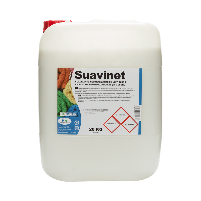 Este produto é um amaciador e neutralizador combinado. Possui todas as propriedades do amaciador Suav e, para além disso, elimina os resíduos alcalinos dos detergentes da fase de lavagem e os resíduos de cloro livre da fase de branqueamento.