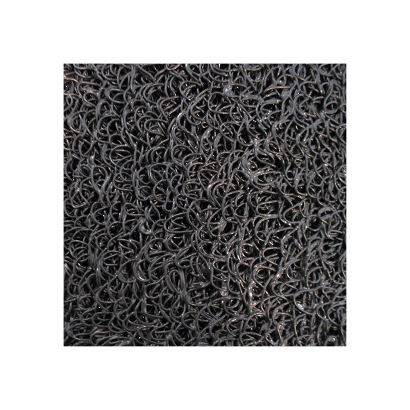 Tapete esparguete em multi-filamento de vinil cinza escuro com base. A sujidade e os detritos depositam-se por baixo do tapete, facilitando a sua limpeza, evitando assim que estes passem para o interior do edifício. Material durável e flexível.