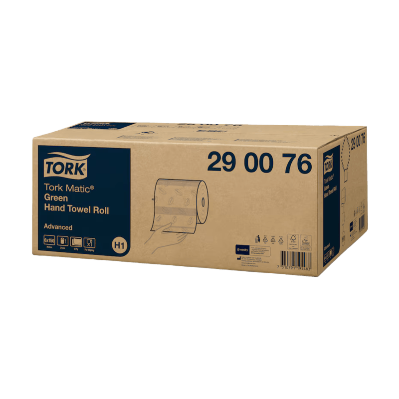 As Toalhas de Mãos Verdes em Rolo Tork Matic® Advanced, de dupla folha, são espessas e absorventes, garantindo uma secagem eficiente das mãos.
