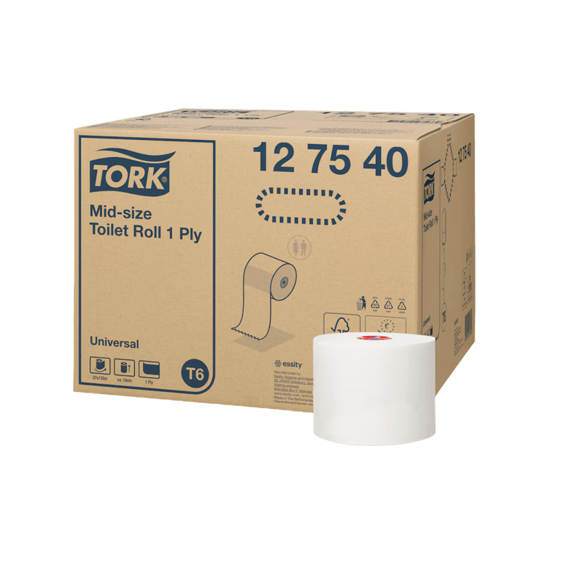 Este papel higiénico é adequado para o Tork Mid-Size Dispensador para dois Rolos de Papel Higiénico é um sistema moderno e eficiente para casas de banho com um volume de tráfego reduzido a médio, altamente focado na satisfação dos clientes. Garante uma elevada eficiência e que os clientes tenham sempre papel higiénico disponível. O Papel Higiénico em Rolo de Tamanho Médio Universal Tork responde às necessidades básicas e oferece uma boa relação preço-qualidade.